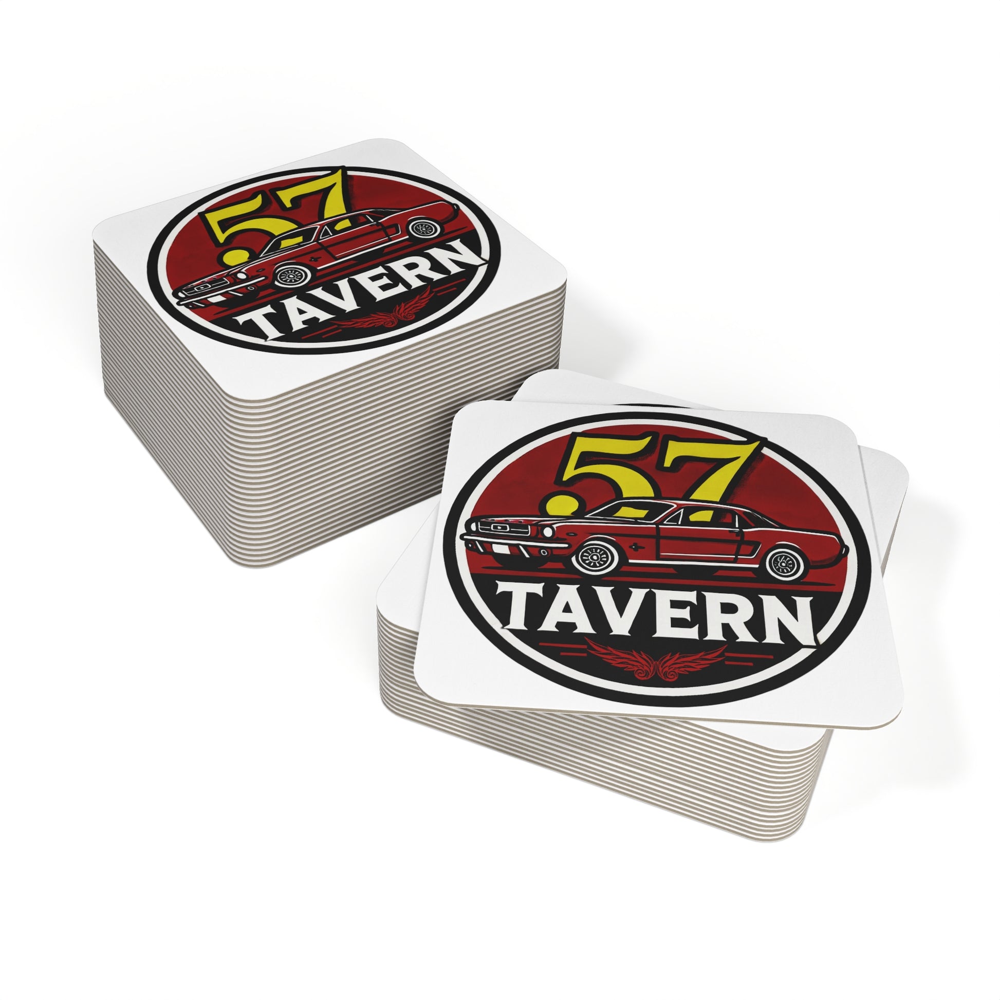 Bring the power of vintage muscle cars straight to your table with the 57 Tavern Coaster Set. Featuring a bold red classic car design and the iconic 57 Tavern logo, these coasters don’t just protect your surfaces—they make a statement. Perfect for bar tops, game nights, parties, or your personal home bar, they strike the perfect balance of durability and style.