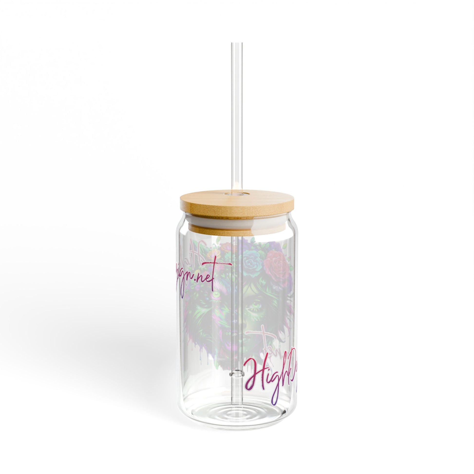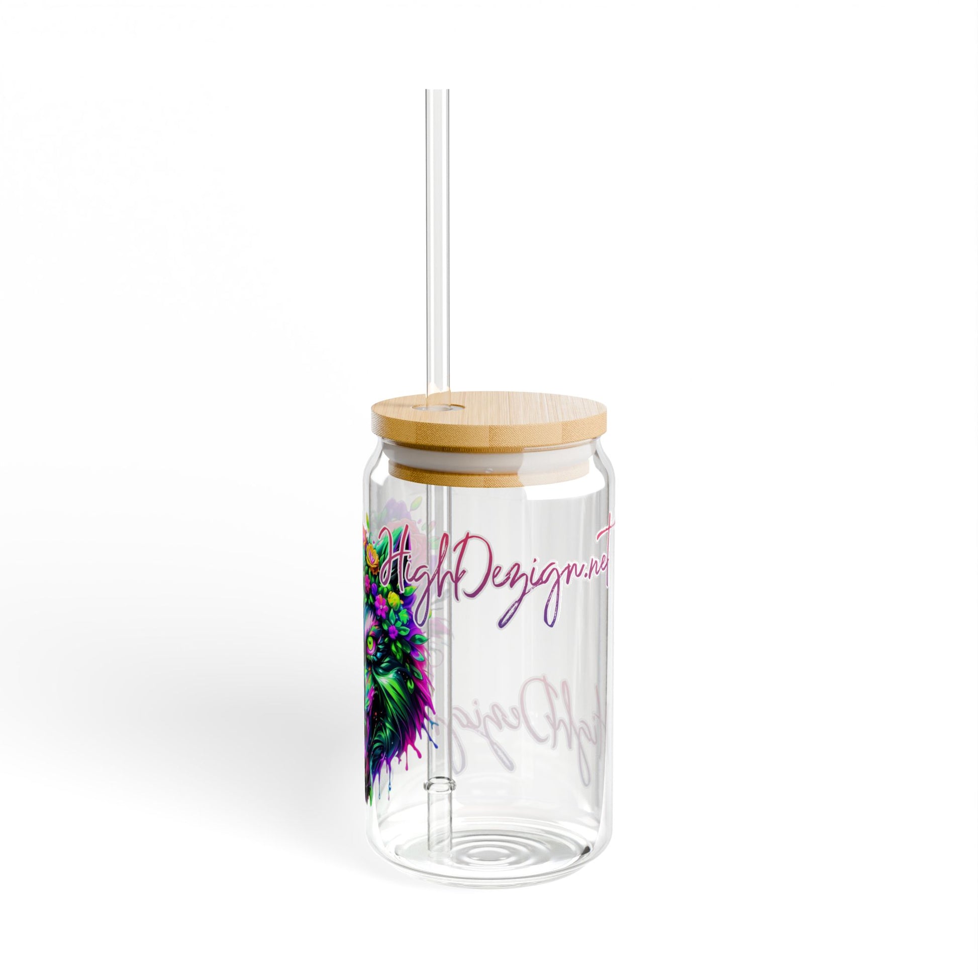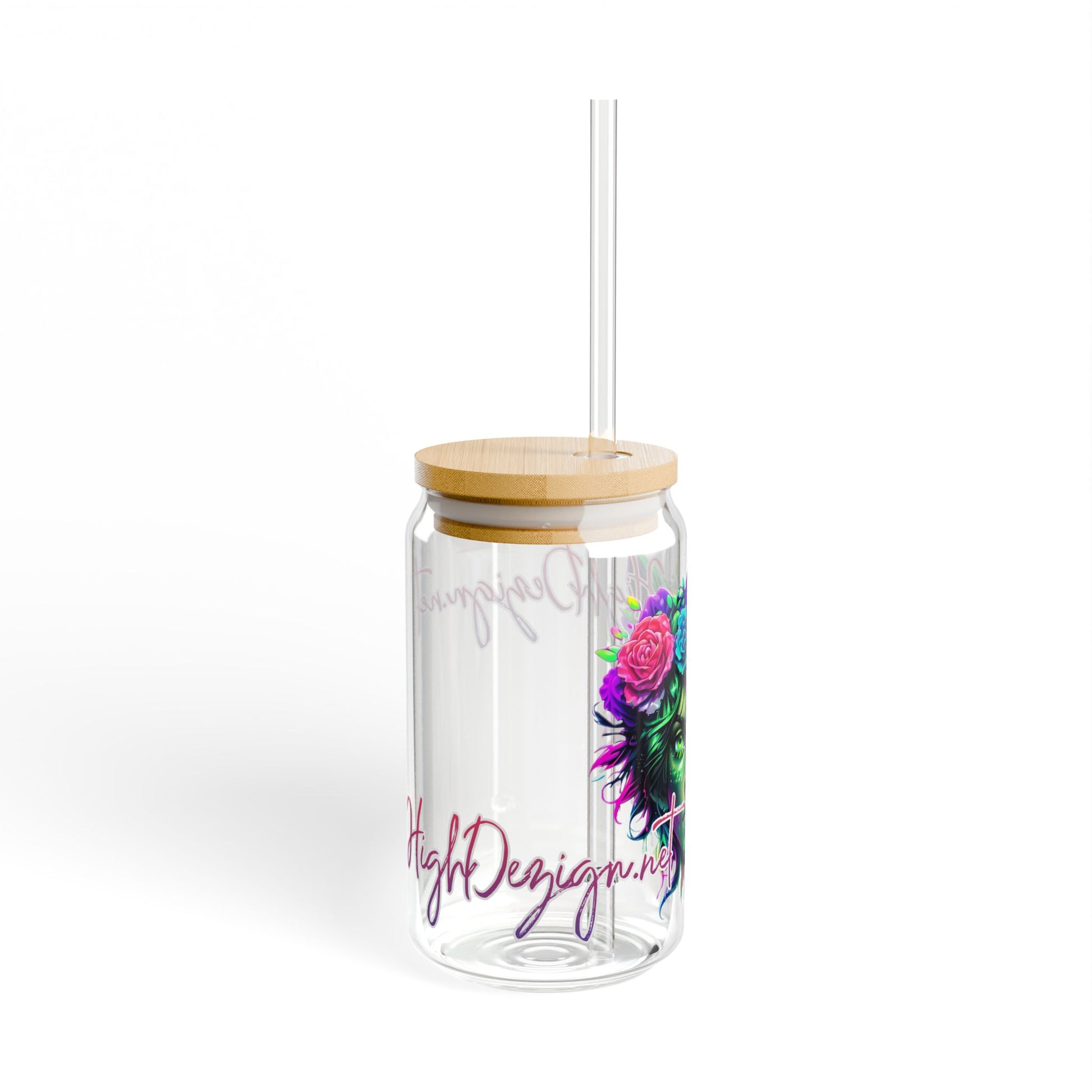 Dual Face – Mother Nature and Her Wild Side Sipper Glass, 16oz Tempered Glass with Bamboo Lid & Straw Option