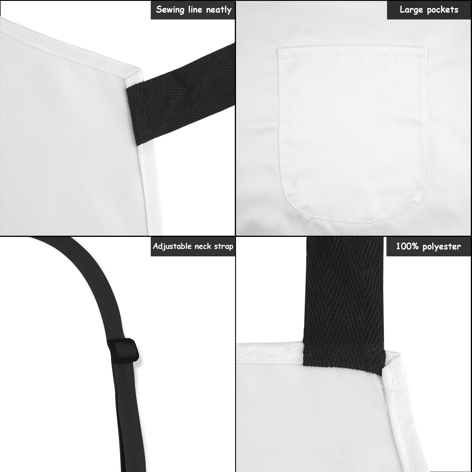 【Product Description 】6.00 Oz. Made from 16*12 twill (100% Polyester), soft and comfortable.With adjustable straps to warp around neck and waist.Two front pockets, perfect for cooking, baking, crafting, gardening, BBQ serving and workers.