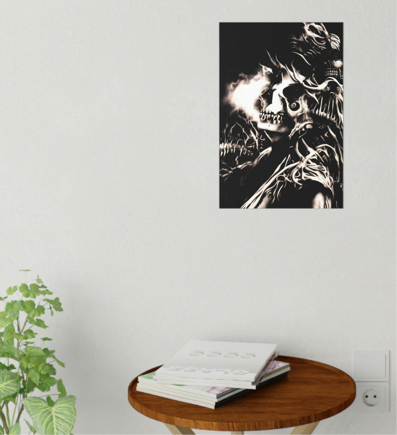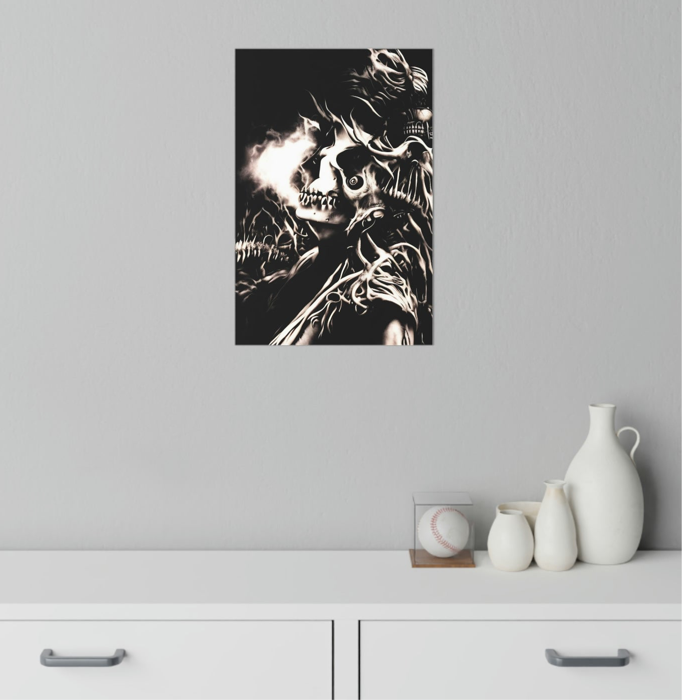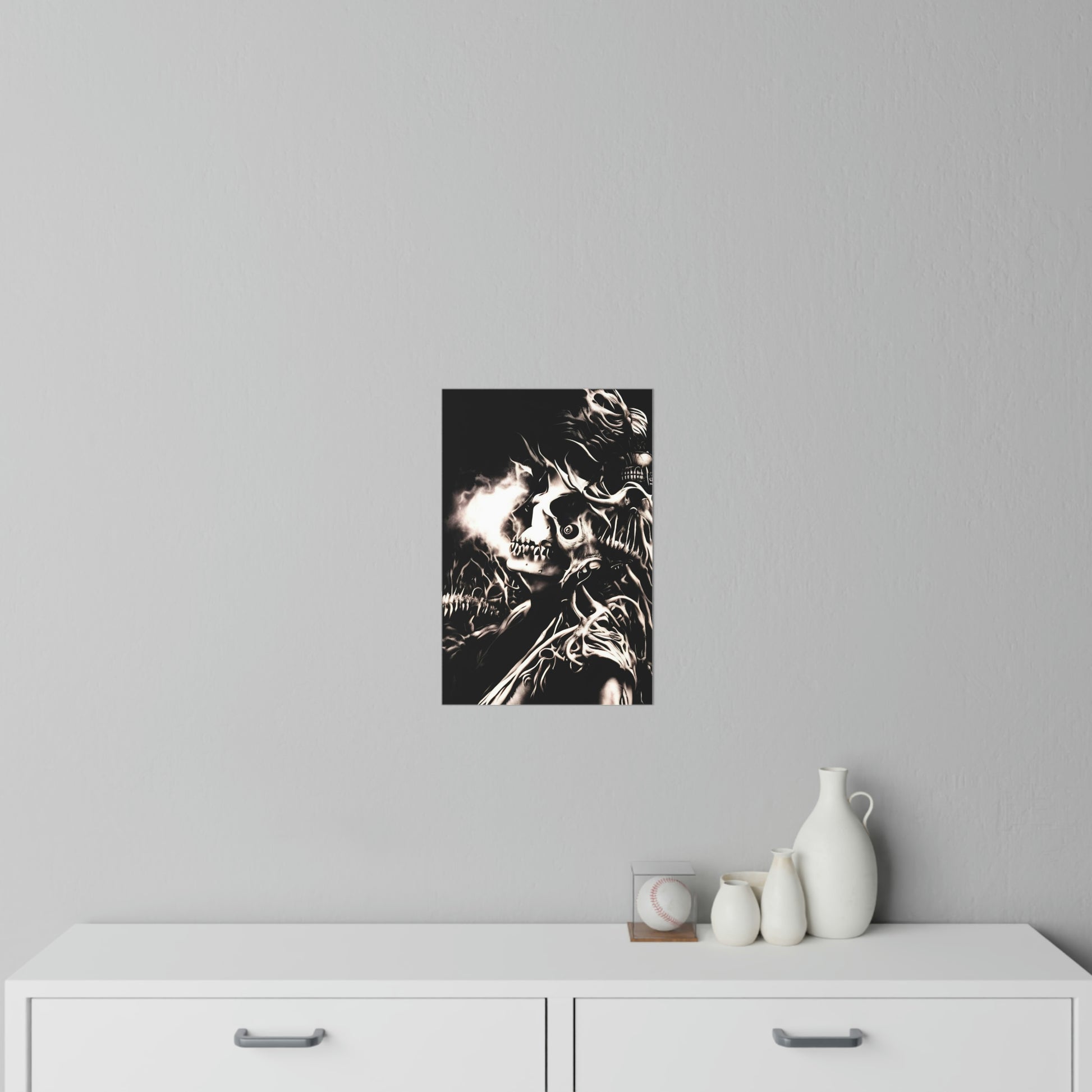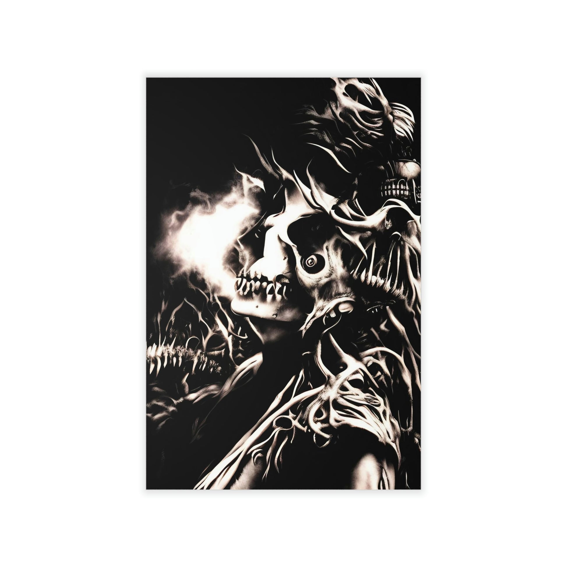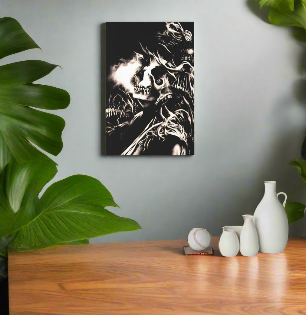 Transform any space into a realm of dark fantasy with this striking “Inferno of Shadows” wall decal. Measuring 12” x 18”, this bold design features a surreal skeletal landscape bursting with energy and depth. Crafted from durable, 0.15mm thick polyester fabric, the decal is easy to apply, reposition, and remove without leaving residue. Its 99% opacity ensures vivid coverage and adds a captivating, woven texture to any wall. Perfect for bedrooms, studios, or living rooms, this removable art piece brings a unique, gothic ambiance wherever it’s placed.