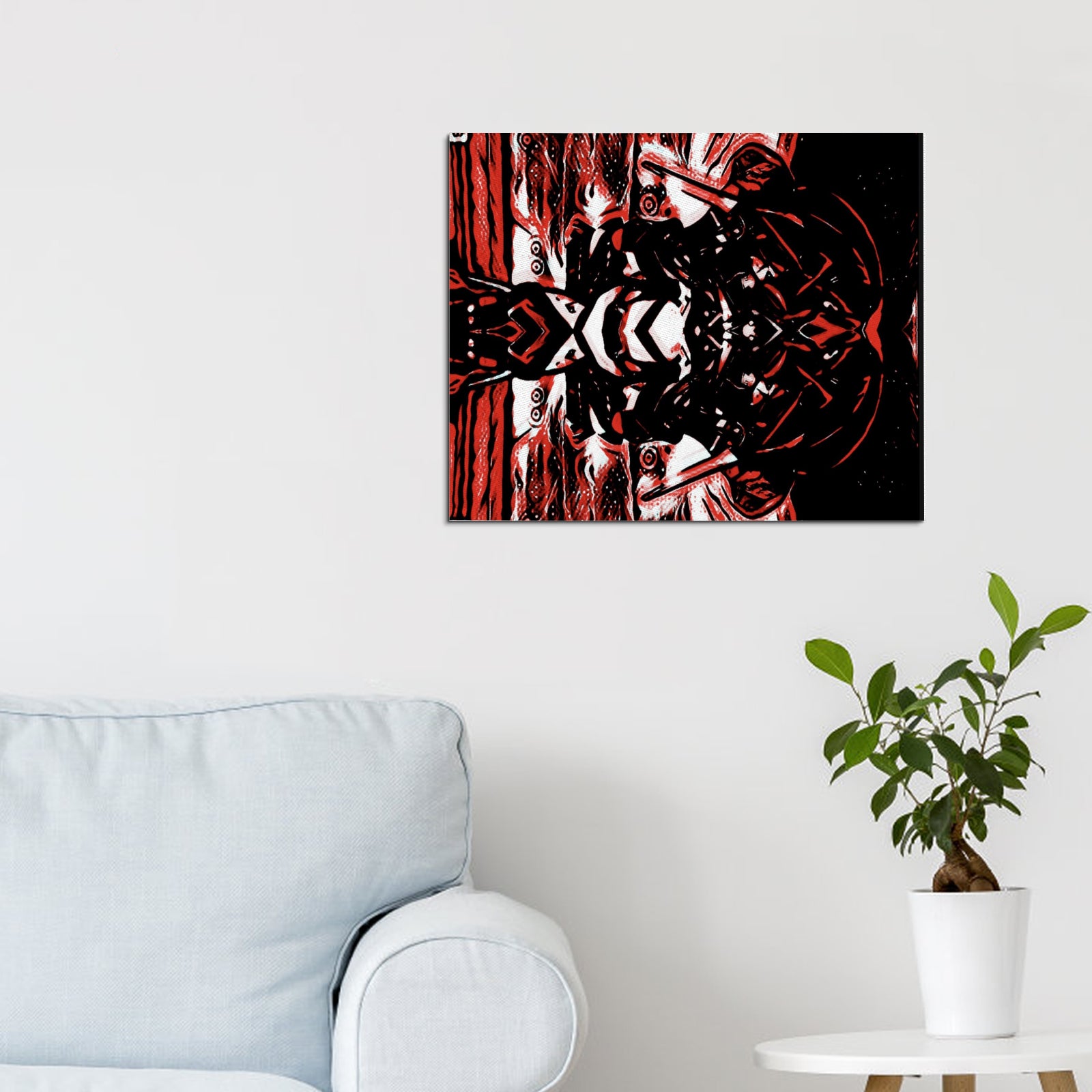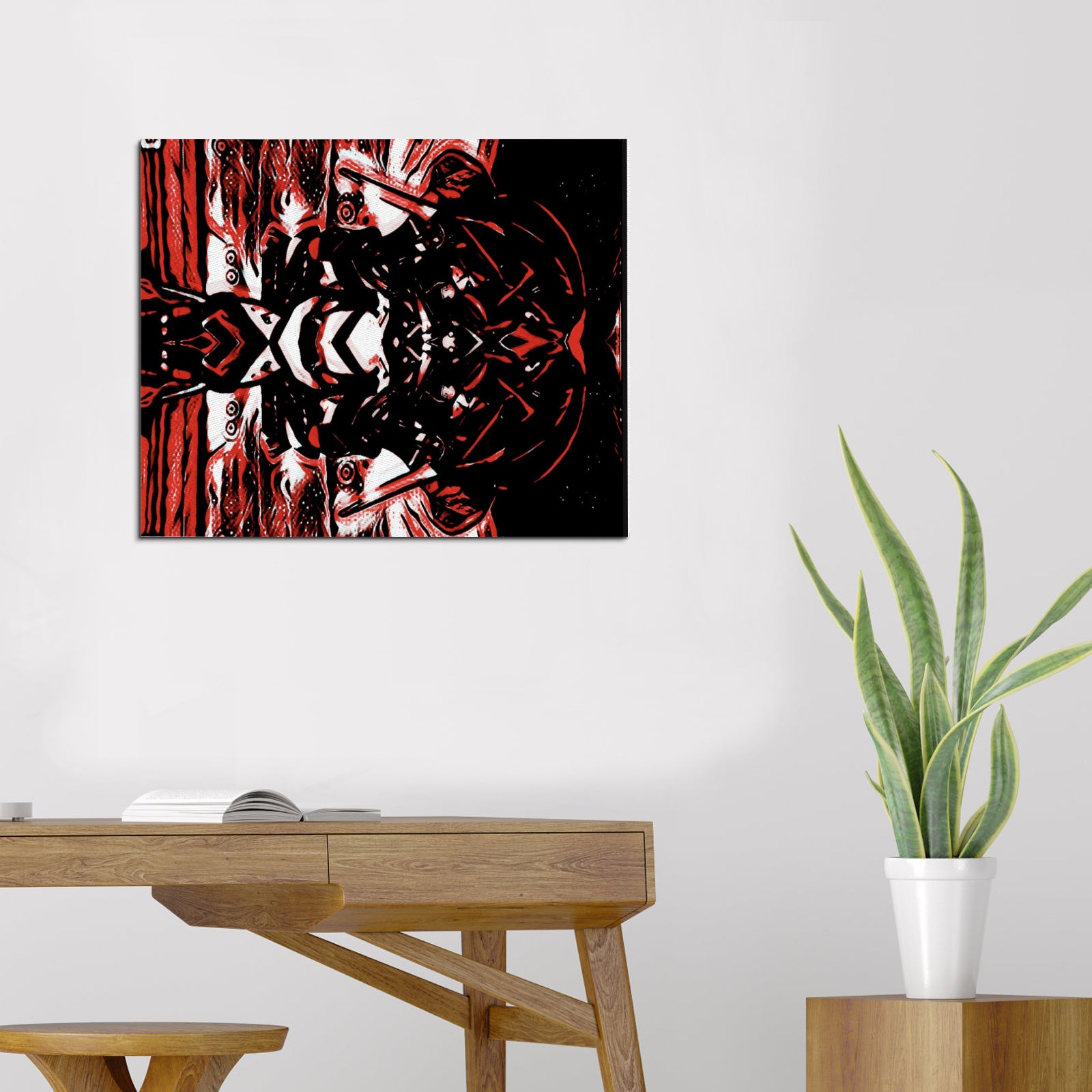 Elevate your walls with the Inferno Reflection Canvas Print, a high-impact art piece printed on ultra-thick 100% cotton canvas. With its mirrored, fiery design in deep red and black, this canvas commands attention and adds a fierce artistic edge to any space.